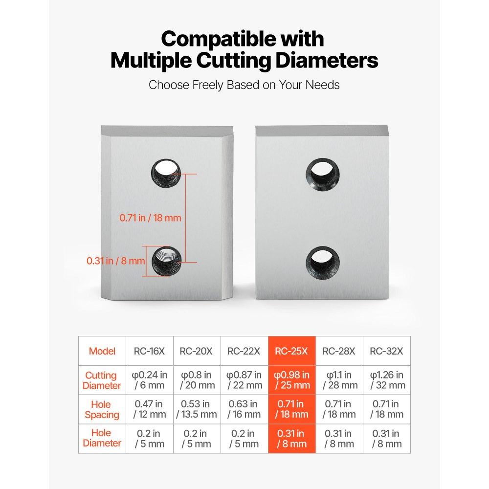 Alta compatibilidad: Ofrecemos una variedad de cuchillas para cortar varillas corrugadas con diferentes diámetros de corte, así como un juego de tornillos de alta calidad. Nuestras cuchillas están diseñadas para ofrecer versatilidad y precisión