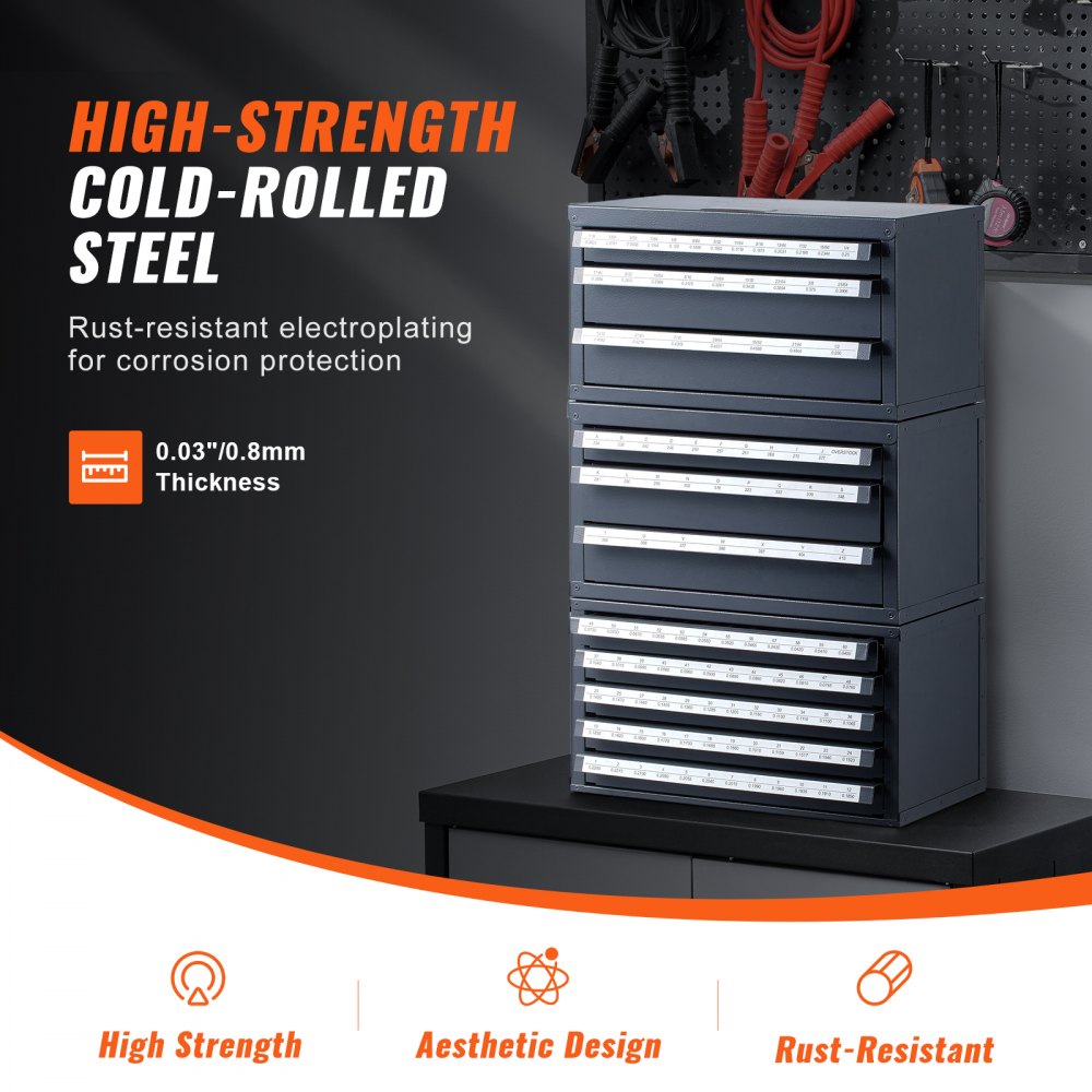 Diseño fácil de usar: Nuestro gabinete de almacenamiento de brocas cuenta con un diseño de rodamiento de bolas para facilitar el deslizamiento del cajón, lo que garantiza una vida útil más larga y un funcionamiento suave del cajón. Los mangos ensanchados y los bordes lisos no tienen bordes afilados, lo que facilita su sujeción. Nunca más tendrás dedos grasosos; todo está bajo tu control.