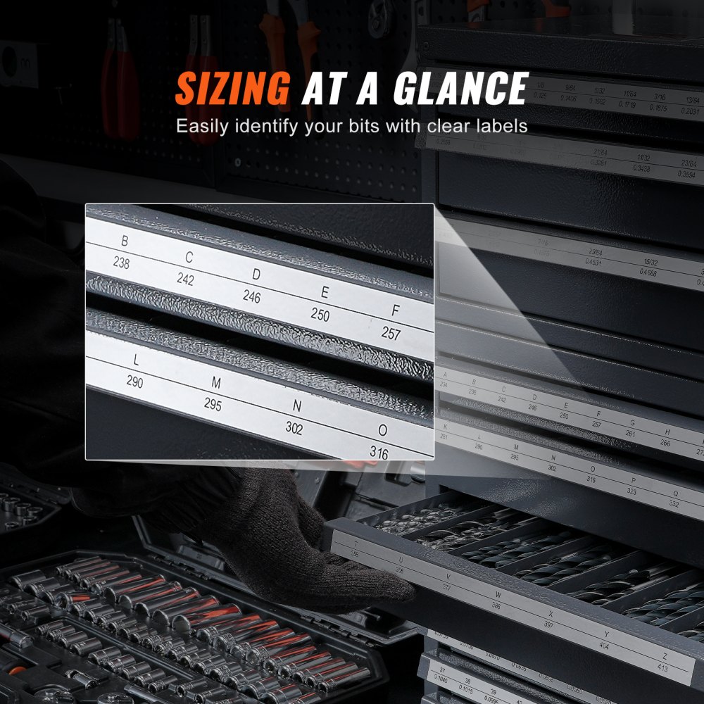 Máxima versatilidad: Nuestro gabinete para brocas brinda almacenamiento, organización e identificación rápida de los tamaños de brocas. Es la opción ideal para almacenar, acceder y organizar herramientas de forma segura. Perfecto para talleres mecánicos, departamentos de mantenimiento y talleres.