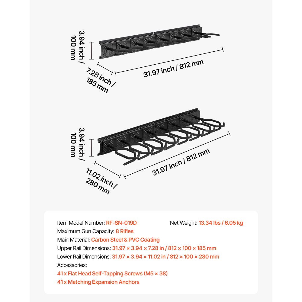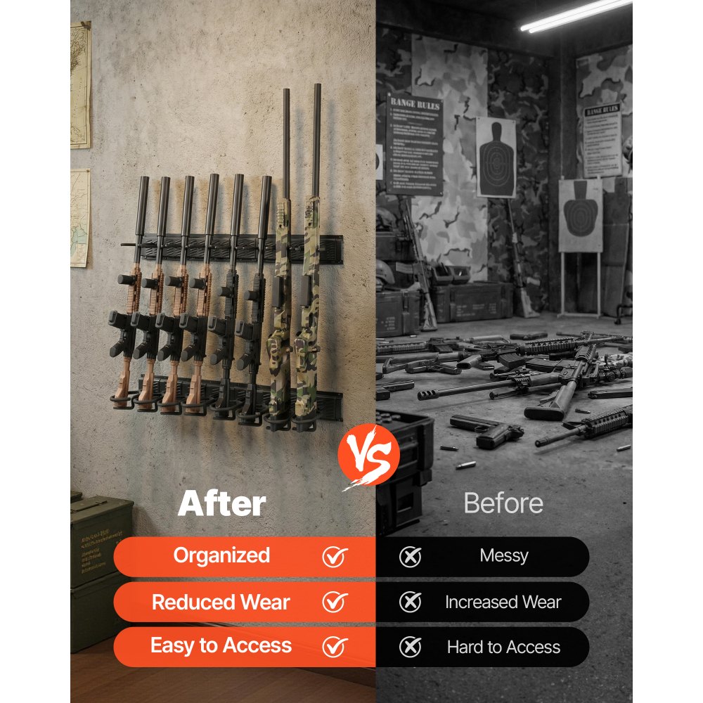Almacenamiento organizado de armas: Este soporte de pared tiene capacidad para hasta 8 armas largas, manteniéndolas ordenadas y fácilmente accesibles. Aprovecha al máximo el espacio de almacenamiento interior