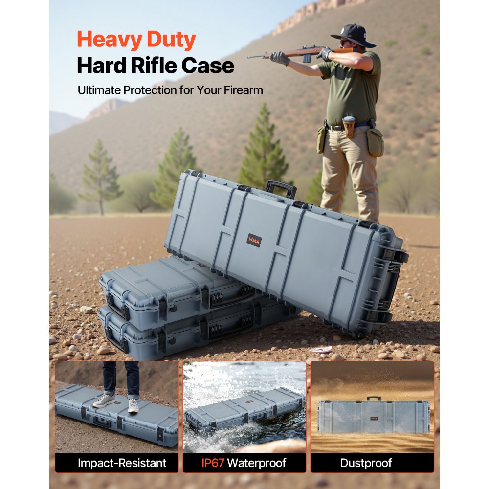 Estuche Rígido para Armas Largas, con Cerradura y Espuma Precortada de 4 Capas, Enrollable, Resistente al Agua IP67 y Polvo, 139,1 x 43,5 x 18,8 cm, Color Gris, para Viajes en Avión y Tren - Herramientas manuales