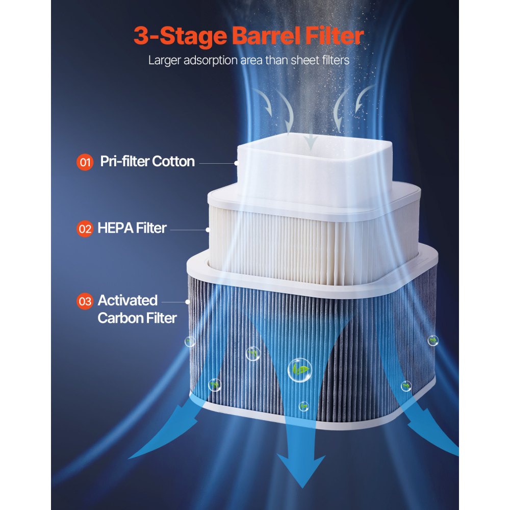 Sistema de filtración de tres etapas: Este extractor de humo de soldadura cuenta con una estructura de filtración de tres capas. El prefiltro de algodón y el filtro HEPA bloquean eficazmente las partículas de polvo grandes y las impurezas diminutas, y el filtro de carbón activado absorbe los gases nocivos, lo que proporciona un rendimiento de filtración y purificación superior