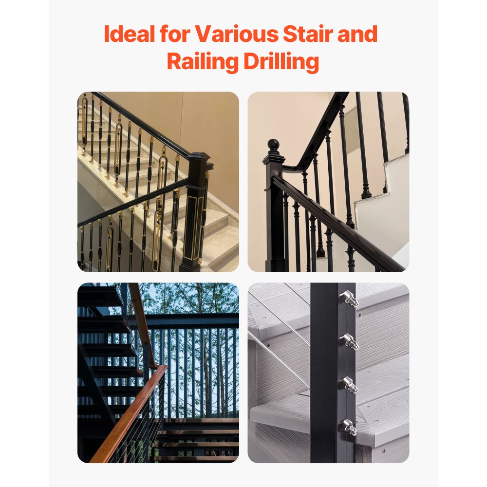 Aplicaciones versátiles: Nuestra guía de perforación es ideal para barandillas de escaleras, vallas, balaustradas y bricolaje. Proporciona resultados rápidos y precisos, simplificando y haciendo más eficiente cada tarea. Se puede utilizar con abrazaderas en F o en C para evitar el movimiento de la guía