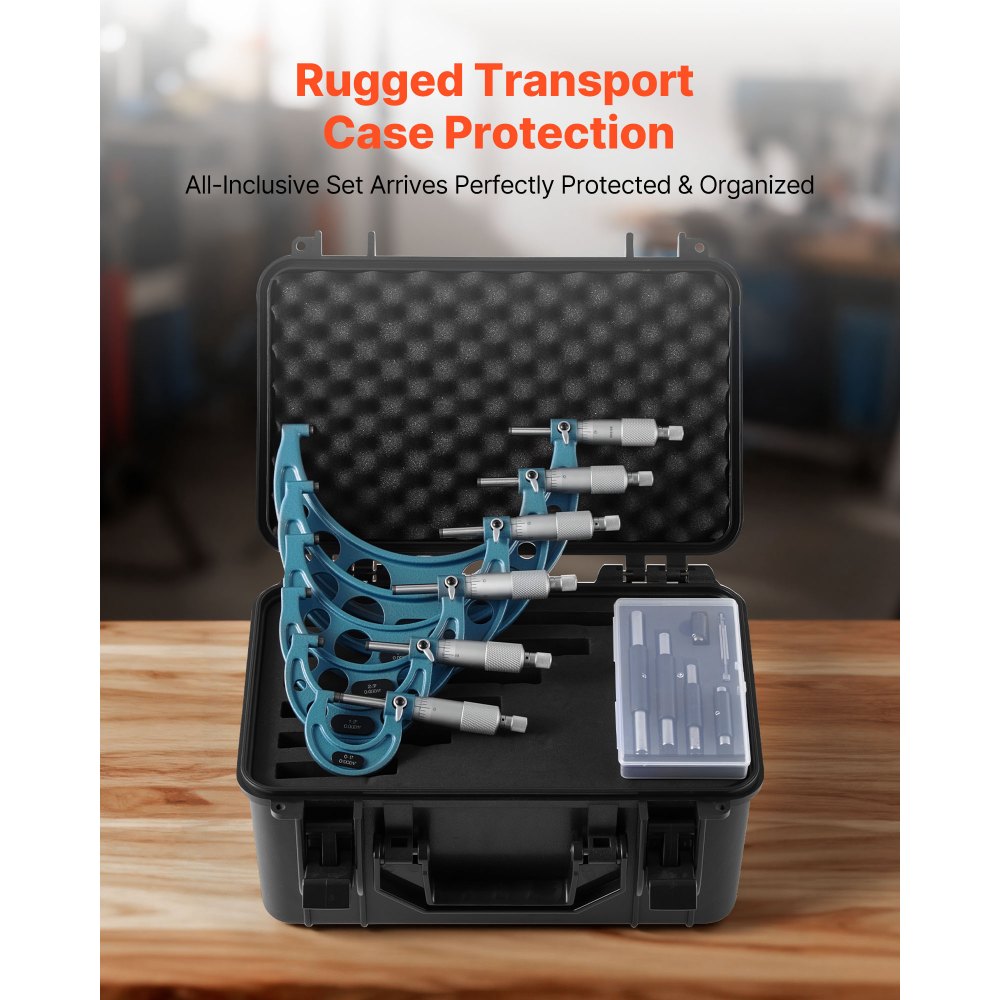 Juego de 6 Micrómetros para Maquinista 0-15,24 cm, Precisión de 0,003 mm, Diseño Mecánico, Herramientas Profesionales con Estuche Protector, para Metalurgia e Ingeniería, 270 x 140 x 22 mm