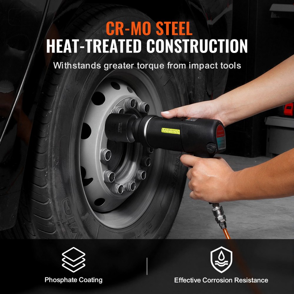 Resistente a los impactos y a la corrosión: fabricado con acero CR-MO tratado térmicamente, el juego de dados para tuercas de husillo puede soportar un alto par de torsión de las herramientas de impacto. El acabado fosfatado aporta resistencia a la corrosión y cada dado está claramente marcado para una fácil identificación.