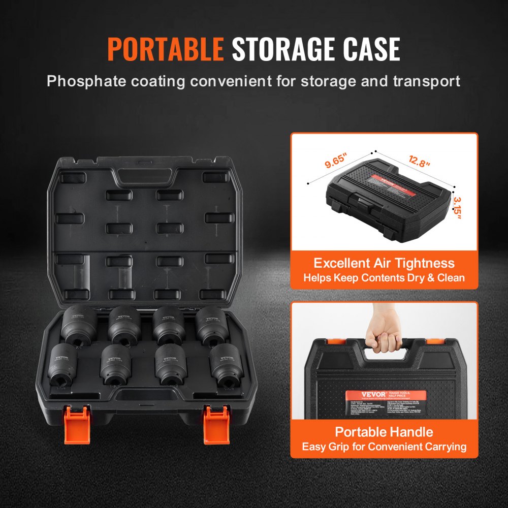 Estuche de almacenamiento portátil: todos los dados de impacto están perfectamente organizados en un estuche de almacenamiento resistente para un acceso y transporte cómodos. El estuche es hermético para mantener las herramientas secas y limpias, e incluye un asa para transportarlo fácilmente.
