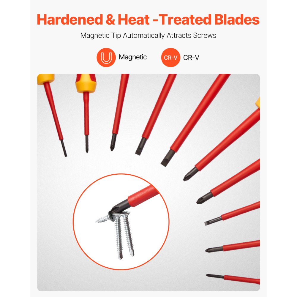 Materiales de primera calidad: Fabricado con componentes endurecidos y tratados térmicamente, este juego de herramientas aislado cuenta con puntas magnéticas para una fijación eficiente de tornillos, lo que hace que las tareas sean rápidas y fáciles