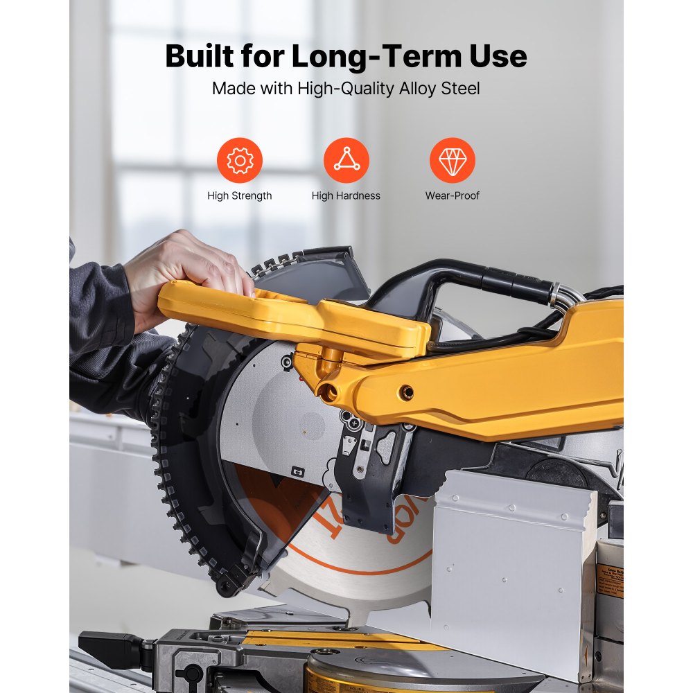 Acero de aleación premium: Fabricado con acero de aleación de alta dureza, nuestro juego de hojas de corte para sierra de mesa se mantiene afilado durante más tiempo, incluso al cortar materiales duros. Ofrece una gran tolerancia al impacto y estabilidad para cortes más suaves y con baja vibración