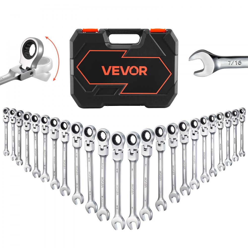 Gama completa de tamaños para reparaciones diarias: Nuestro juego de llaves de trinquete flexibles de 24 piezas incluye llaves métricas de 8-9 mm y de SAE de 1/4"-3/4", proporcionando los tamaños comunes para trabajos automotrices, mantenimiento del hogar, ensamblaje de maquinaria y proyectos de bricolaje