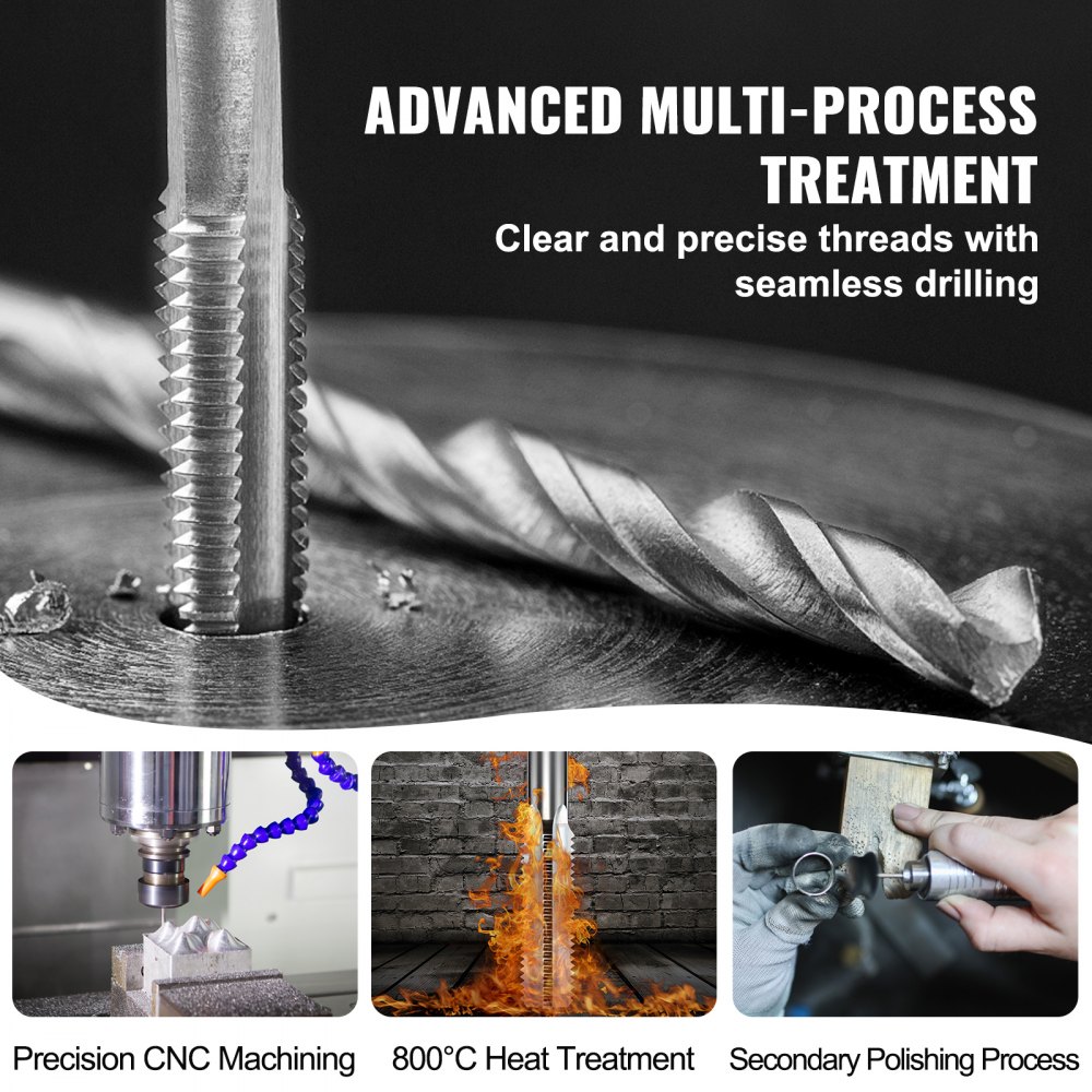 Diseño profesional: El kit de macho y matriz presenta un diseño de matriz hexagonal que distribuye la fuerza de manera más uniforme durante el trabajo. Con estrictos procesos de fabricación, el producto es robusto, duradero y resistente a roturas. Los dientes cónicos de las herramientas de roscado están especialmente diseñados para un inicio de roscado fácil y suave, al tiempo que evitan el roscado excesivo.