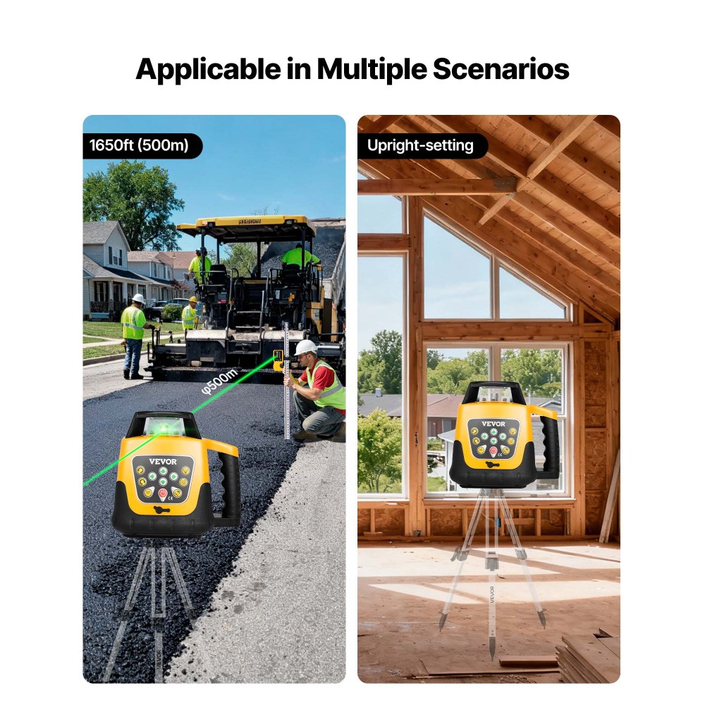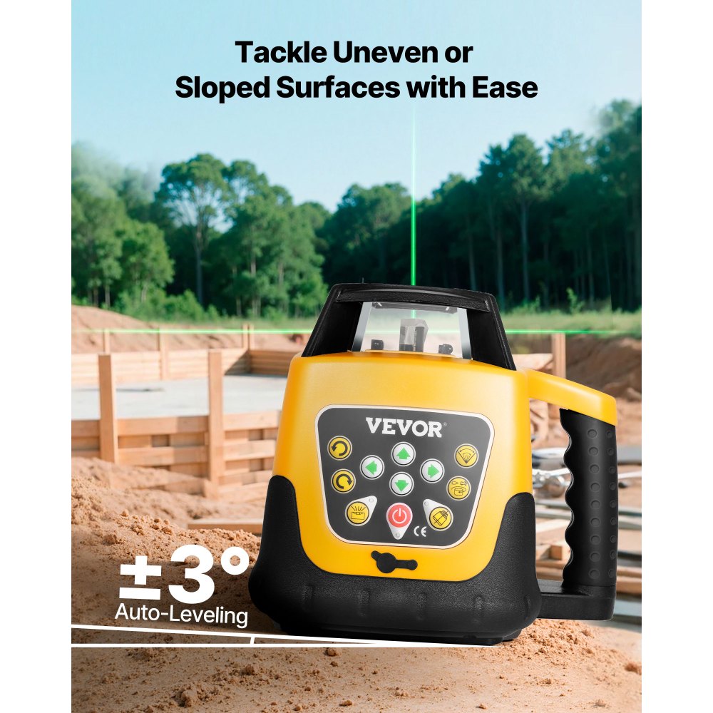 Protección robusta: Fabricado con plástico resistente y metal de alta calidad, este kit de nivel láser giratorio es robusto y fiable. Su diseño IP54 a prueba de polvo y agua resiste la suciedad y la humedad, garantizando un funcionamiento estable incluso en condiciones adversas
