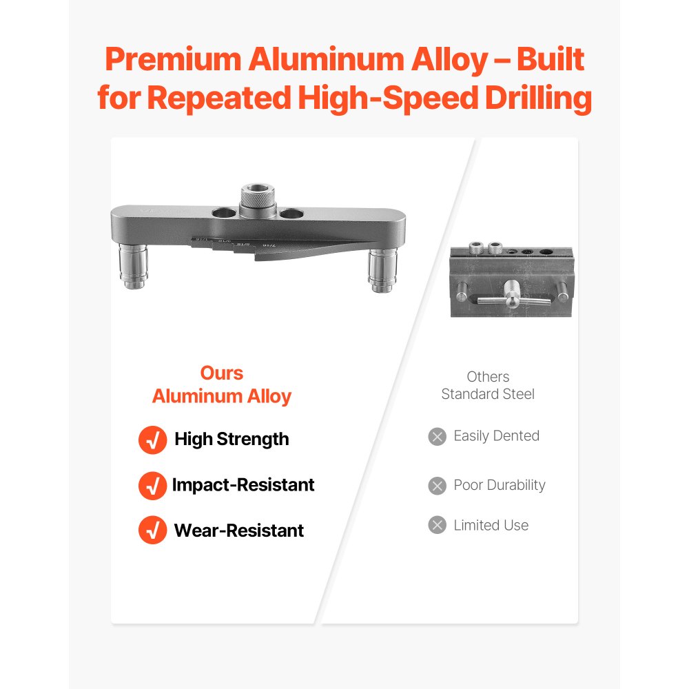 Aleación de aluminio duradera con marcas láser: Nuestra plantilla para agujeros rectos está fabricada con aleación de aluminio de alta resistencia para una larga durabilidad. Cuenta con escalas claras y resistentes al desgaste grabadas con láser para una alineación precisa, incluso después de un uso repetido