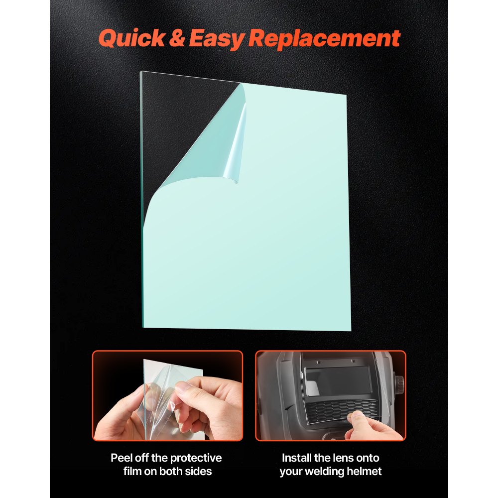 Fácil de reemplazar: Incluye 20 lentes de filtro exterior de repuesto, lo que le garantiza tener suficientes repuestos a mano. Simplemente, retire la película protectora de ambos lados y coloque la lente en su casco de soldadura para un reemplazo rápido