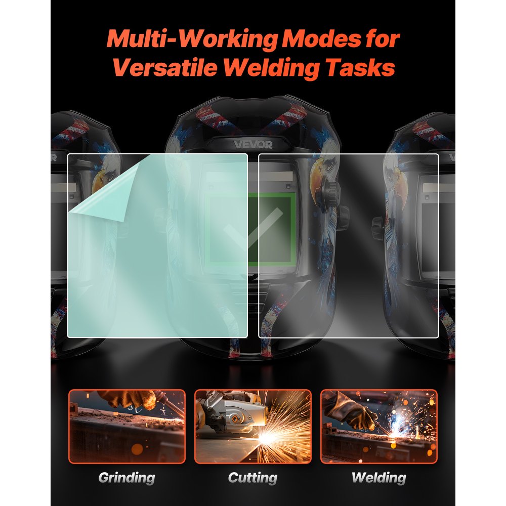 Material duradero de primera calidad: La lente exterior de este casco de soldadura está hecha de PP de alta calidad, con excelente resistencia a impactos, calor y rayones. Protege eficazmente contra salpicaduras y altas temperaturas