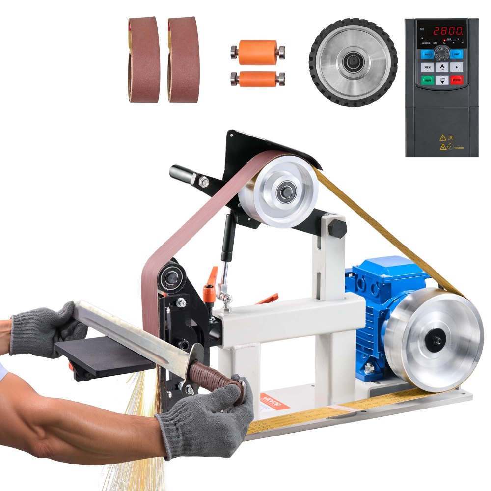 Lijadora de banda VEVOR, pulidora de banda de velocidad variable de 72 x 2 pulgadas con VFD, pulidora de banda de 1500 W y 2 HP con 3 moldes de pulido y 3 bandas de lijado para trabajar metales y fabricar cuchillos - Herramientas manuales