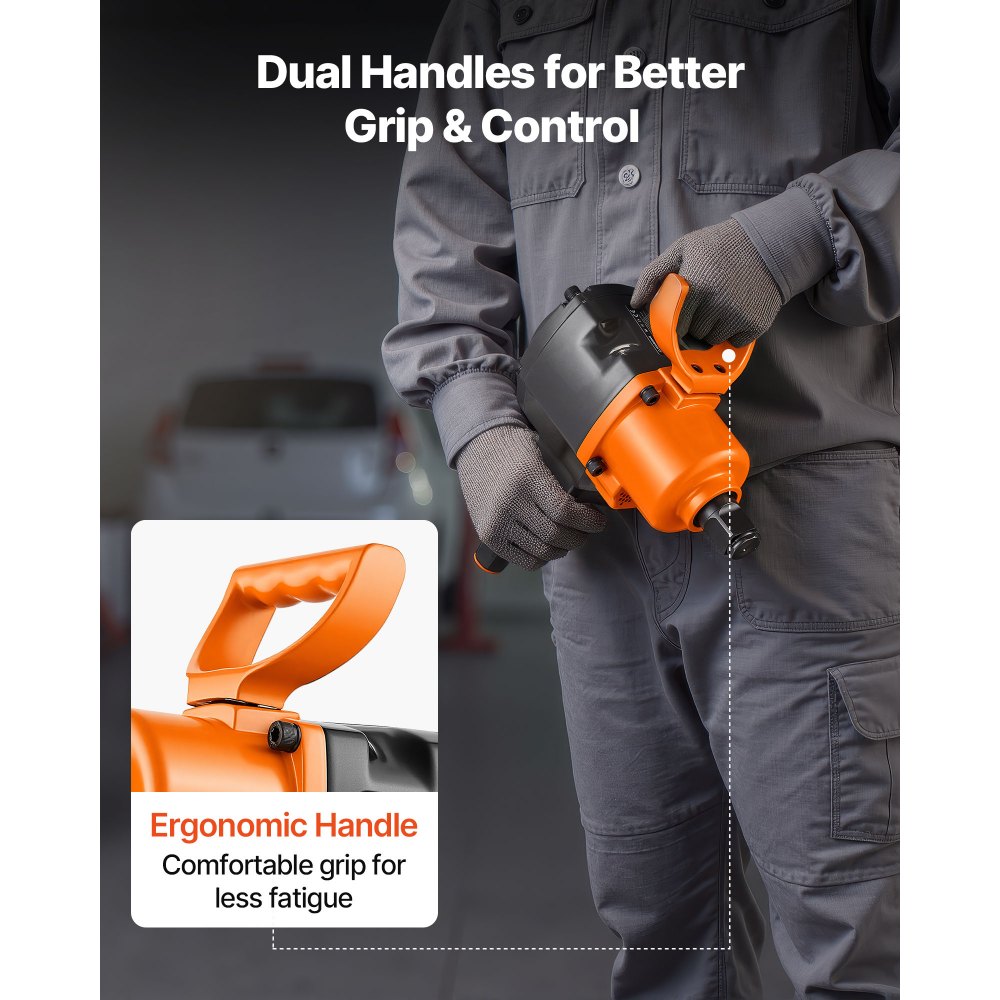 Fácil de usar: Con mangos dobles y un agarre ergonómico antideslizante, esta llave de impacto neumática proporciona un mejor control y un funcionamiento más estable. Reduce la vibración y la fatiga para un uso prolongado