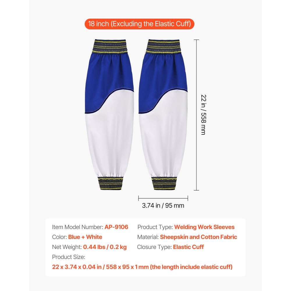 Mangas de Soldadura Resistentes al Fuego, de Piel de Oveja Resistente y Algodón Ignífugo, Unisex, con Puños Elásticos para Soldadura, Carpintería y Herrería, 558 x 95 x 1 mm, Azul y Blanco - Herramientas manuales