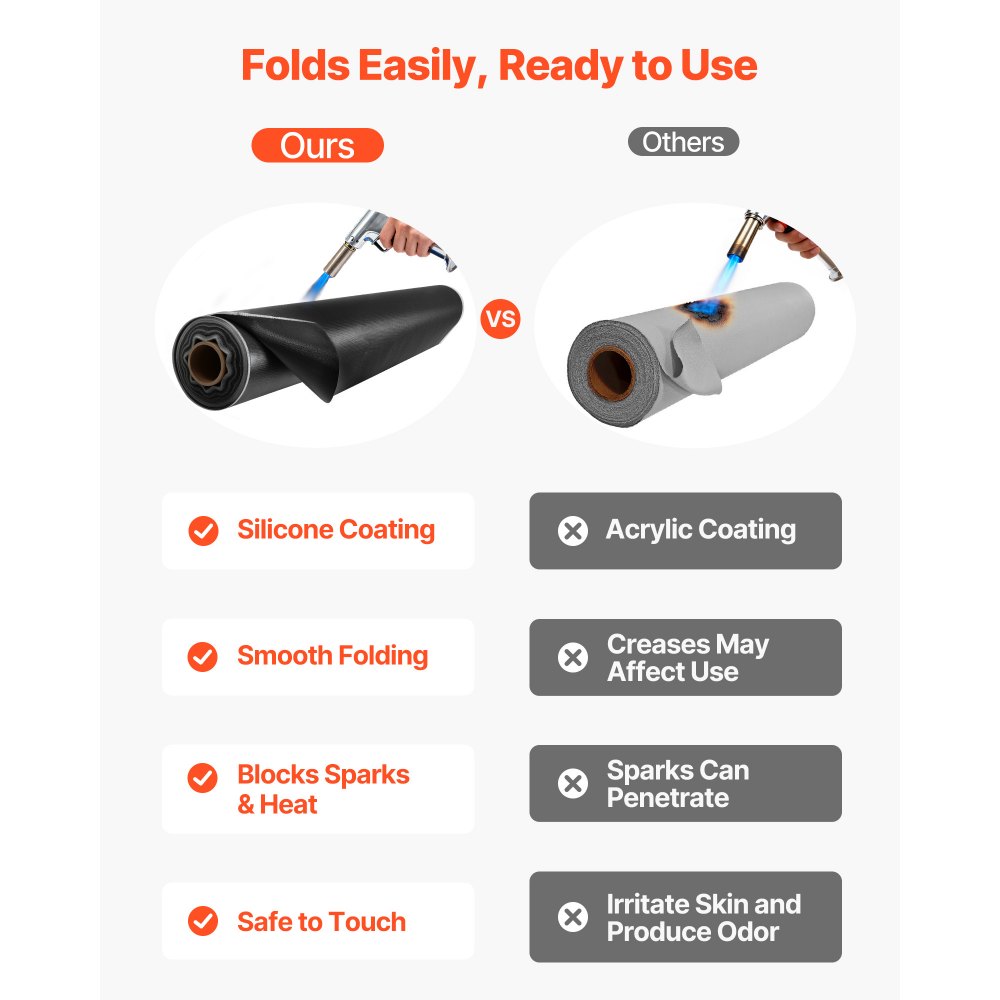 Fácil de cortar y guardar: Esta manta ignífuga de gran tamaño es ideal para proteger equipos grandes, suelos, paredes o áreas de trabajo extensas. También se puede cortar al tamaño y forma deseados. Cuando no la uses, simplemente enróllala y guárdala para ahorrar espacio