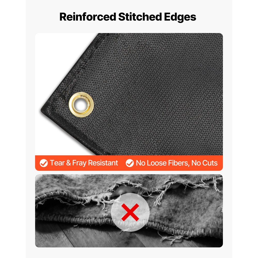 Manta de Soldadura, 1219 x 1829 mm, Protección para Soldadura de Fibra de Vidrio Recubierta de Silicona, hasta 982 °C, Resistente al Calor, Aislante Ignífugo con Ojales Metálicos, Negro - Herramientas manuales