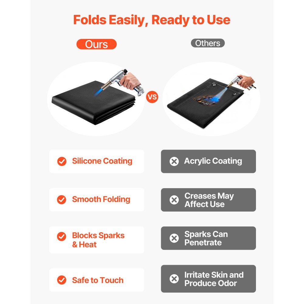 Aplicaciones versátiles: Esta manta ignífuga de fibra de vidrio recubierta de silicona no solo es apta para soldar, sino también indispensable para cortar metal, asar a la parrilla o para protegerse del fuego en campamentos. Ofrece protección fiable contra el calor, las llamas y las chispas, lo que le permite trabajar con mayor seguridad