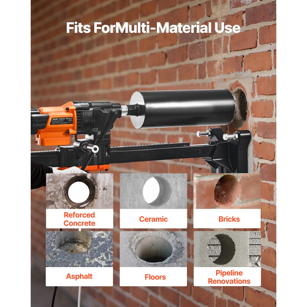 Perforadora de Diamante, Perforadora de Núcleo 535/920 RPM de 2 Velocidades en Seco y Húmedo con Soporte, 10 Brocas, Diámetro de Perforación de 20-254 mm para Hormigón, Ladrillo, Piedra - Herramientas manuales