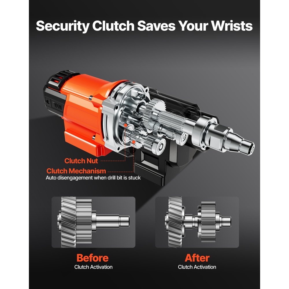Mayor seguridad y estabilidad: El embrague integrado detiene automáticamente el taladro al encontrar una resistencia fuerte para protegerlo a usted y a la máquina perforadora. Además, el diseño sin sello de agua evita las fallas comunes del sello y mantiene un flujo de trabajo estable