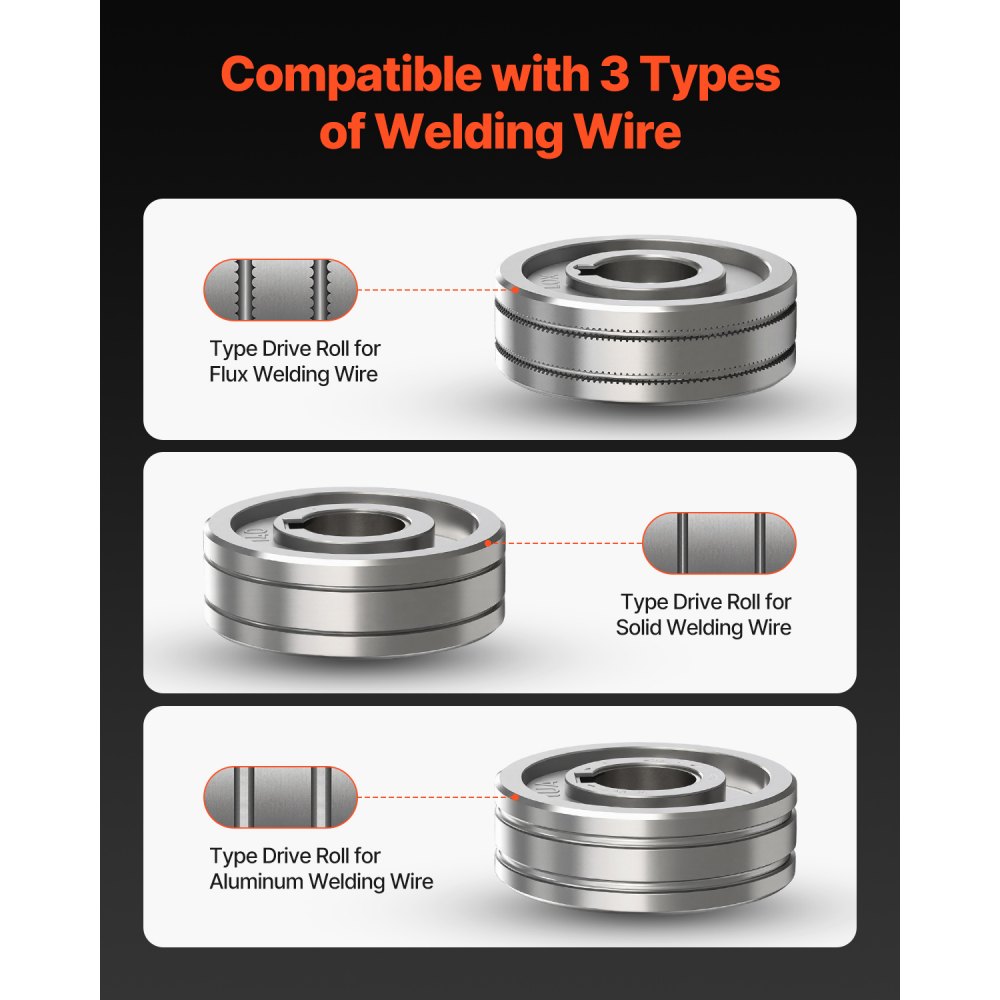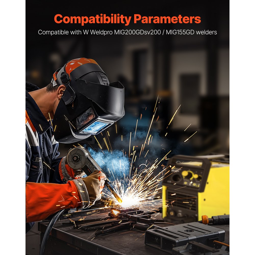 Compatibilidad: Compatible con los soldadores MIG W Weldpro MlG200GDsv200 y MIG155GD y admite carretes de alambre de soldadura de 1 lb, lo que ofrece versatilidad para diversas tareas de soldadura
