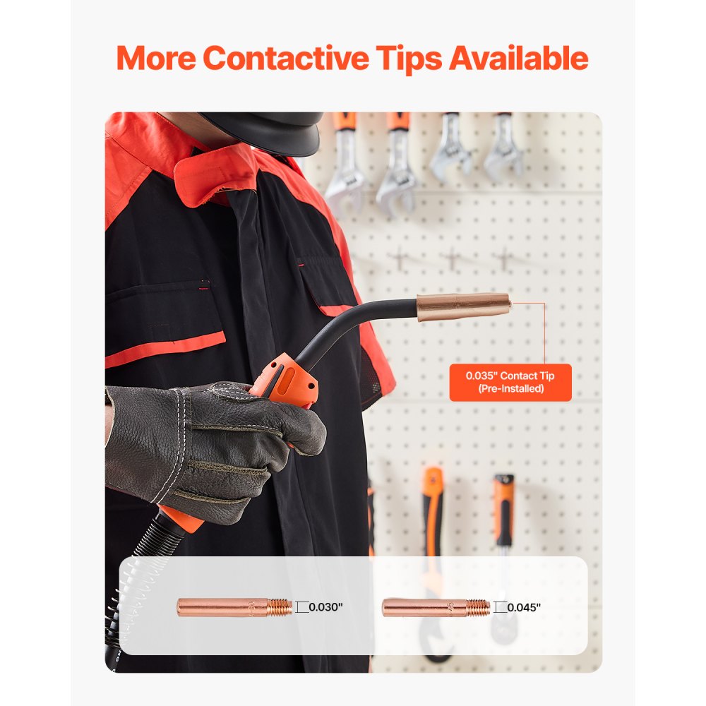Compatibilidad: La pistola de soldadura MIG VEVOR de 250 A es compatible con las soldadoras Lincoln Power MIG 200, Power MIG 215, Power MIG 216, Power MIG 255 y Wire-Matic 255. Admite 2 diámetros de alambre: 0,035" y 0,045", lo que la hace versátil para diversas tareas de soldadura