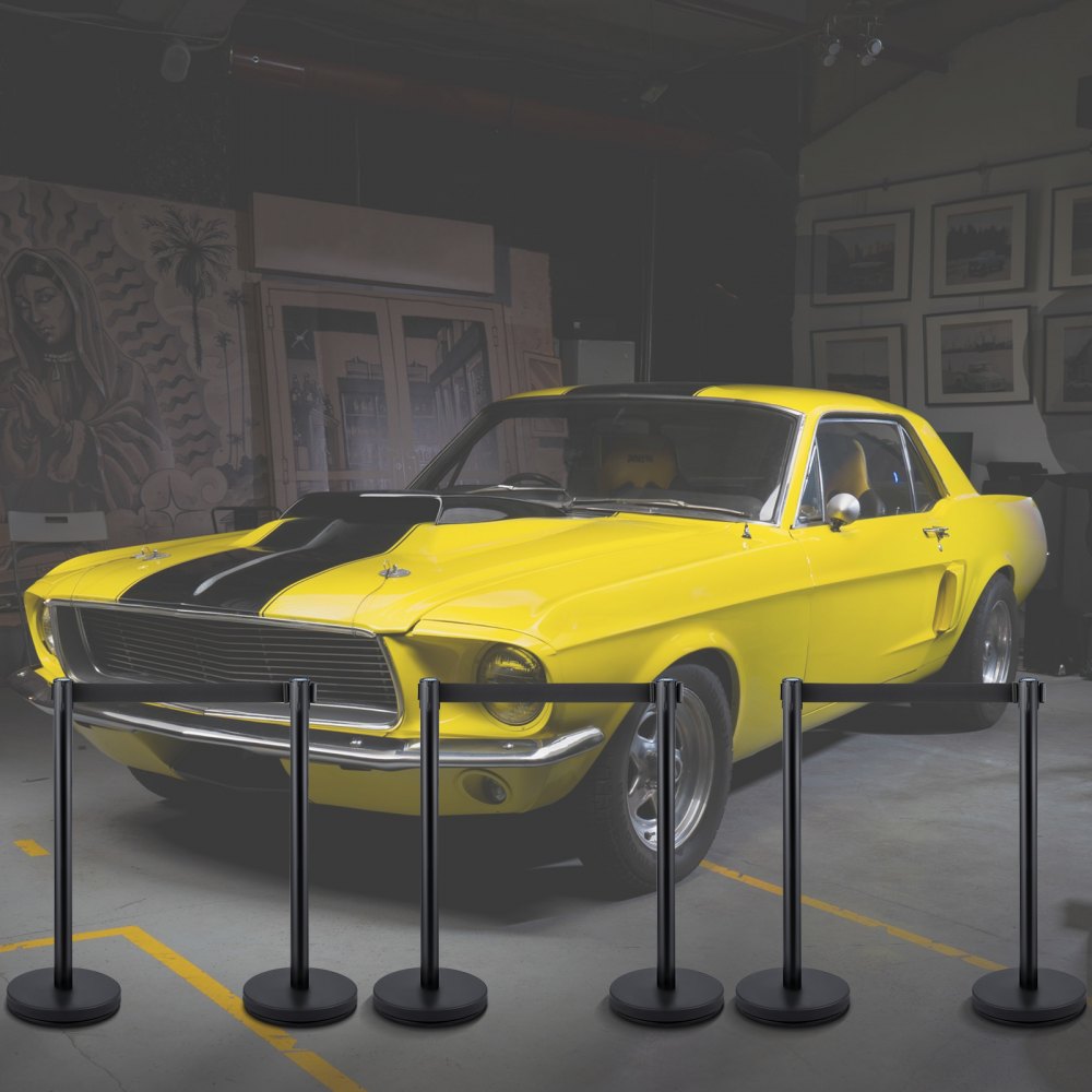 Poste Guía de Barrera de Seguridad 6 Piezas 3 Cuerdas Retráctiles, Negro