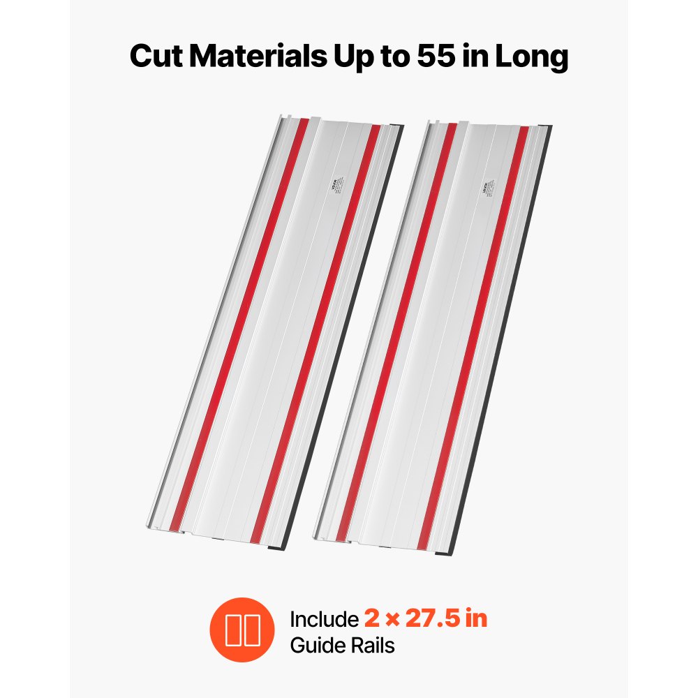 Riel Guía para Sierra de Mesa, Rango de Corte de 139,7 cm, Incluye 2 Rieles Guía de Aluminio Extruido de 698,5 mm y 1 Conector, para Makita, Festool y WEN, para Proyectos de Carpintería