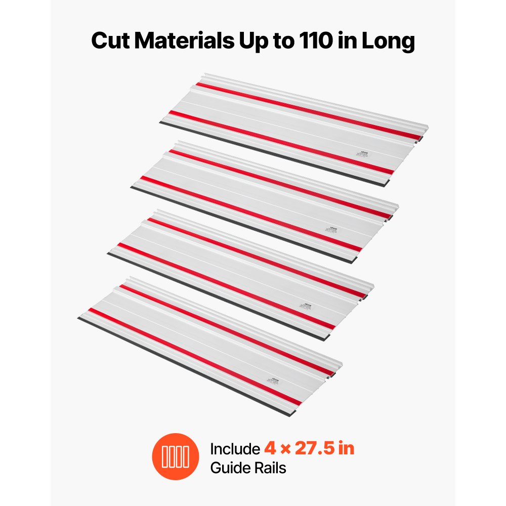 Riel Guía para Sierra de Mesa, Rango de Corte de 279,4 cm, Incluye 4 Rieles Guía de Aluminio Extruido de 698,5 mm y 3 Conectores, Compatible con Makita, Festool y WEN, para Carpintería