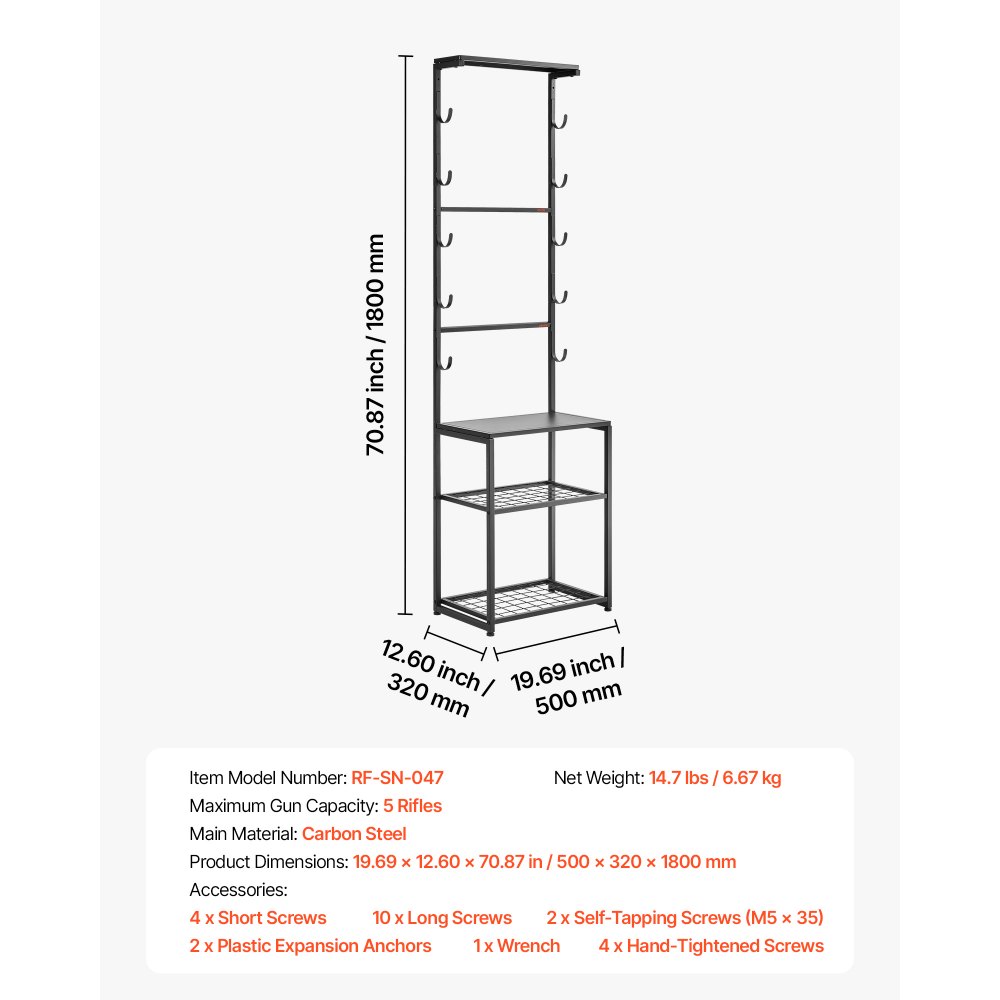 Soporte de Almacenamiento para Armas de Fuego, Capacidad de 5 Escopetas, Estantería para Armas de Interior, con Estantes Inferiores y Superior, Acero al Carbono, para Exhibición Garaje Taller - Herramientas manuales
