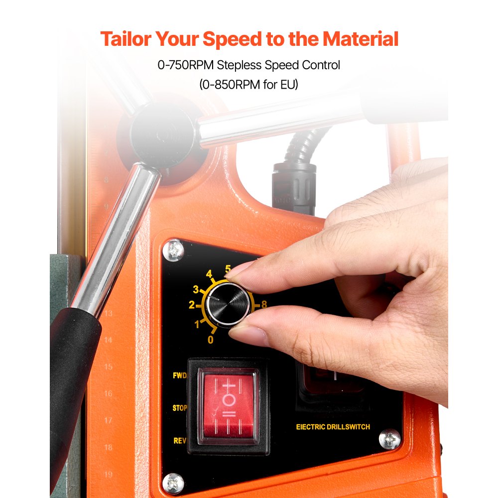 Velocidad precisa y recorrido extendido: El control de velocidad de 10 niveles es adecuado para materiales desde metales blandos hasta acero endurecido, y garantiza un corte óptimo y reduce el desgaste de la broca. El taladro magnético cuenta con un recorrido de 22 cm (8,66 pulgadas) y una escala clara para una perforación uniforme y precisa