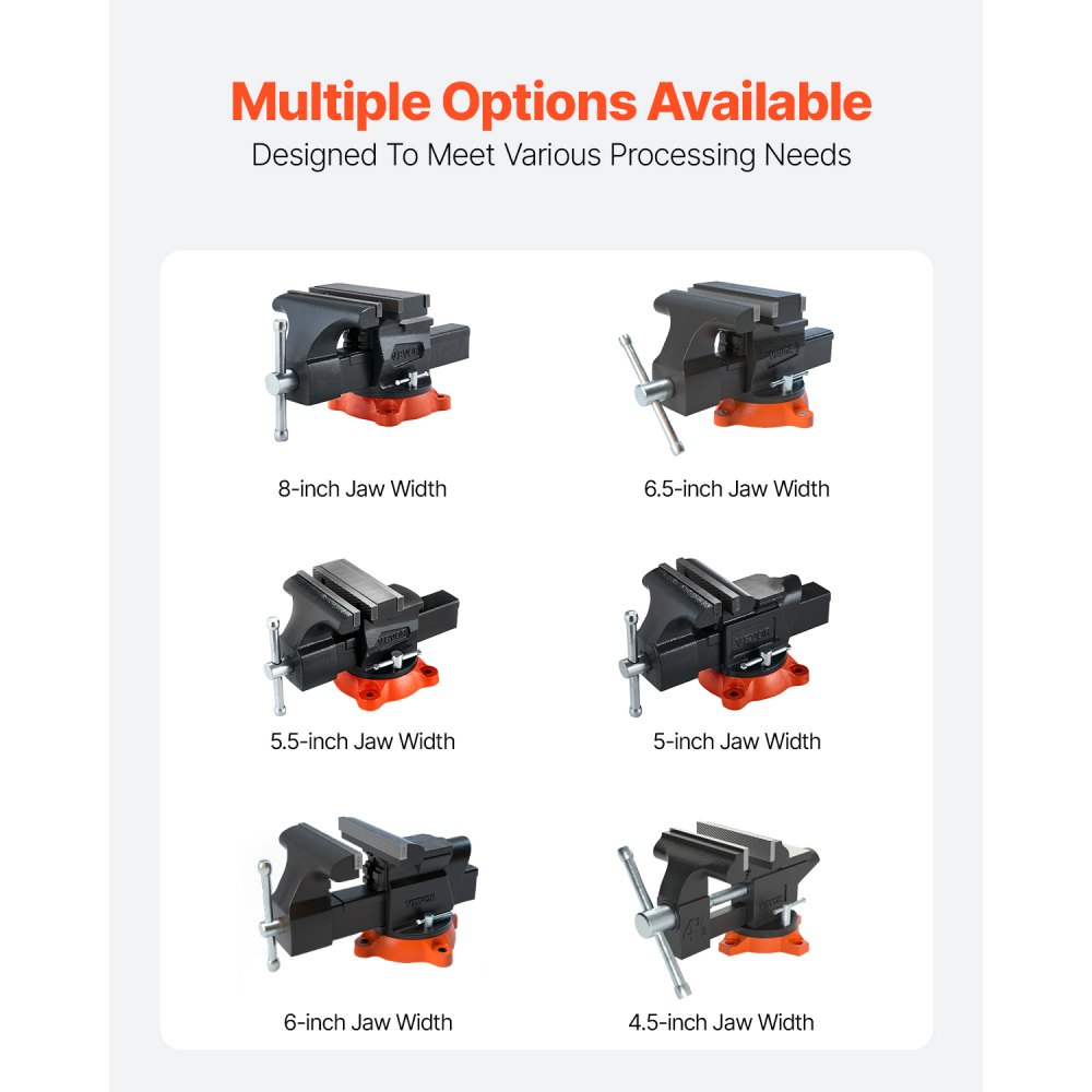 Base giratoria de 360 grados: La base giratoria de 360 grados permite realizar ajustes con facilidad y le permite colocar su trabajo en el ángulo deseado. No importa si está realizando un trabajo de detalle intrincado o un procesamiento pesado, nuestra prensa de banco de trabajo multiusos le ofrece la flexibilidad que necesita para trabajar con facilidad y rapidez