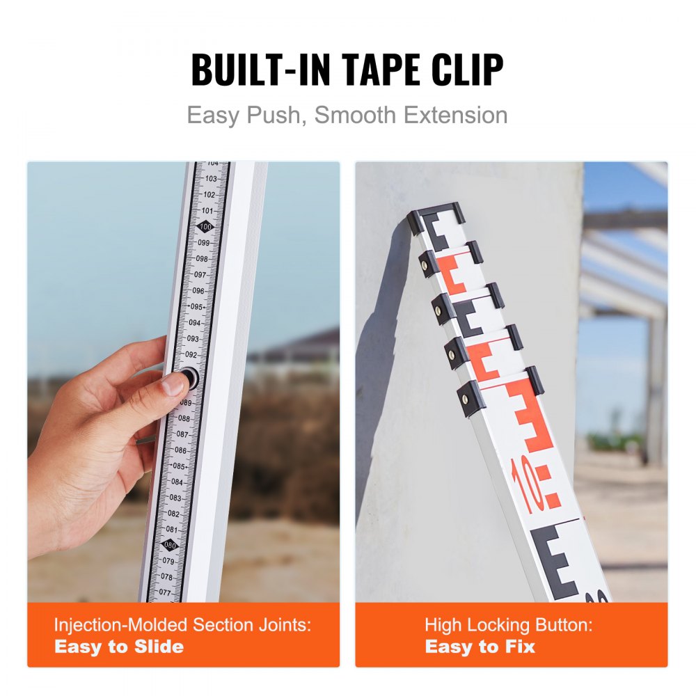 Funcionalidad expandible: esta varilla niveladora está equipada con 5 secciones telescópicas ajustables que se extienden hasta 16,40 pies/5 m. Está diseñada en forma rectangular, lo que garantiza una fácil operación y alineación con las superficies, y se pliega para un almacenamiento compacto cuando no se usa.