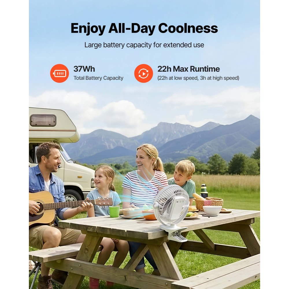 Ventilador Portátil con Clip Batería Doble, 4 Velocidades 3 Fijas y 1 Modo de Circulación, Ventilador con Pinza hasta 139 CFM Motor de Cobre USB-C Cable 1 m para Escritorio Oficina Viaje Camping