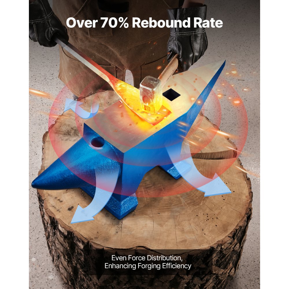 Agujeros y Cuernos para Diferentes Usos: El cuerno redondo y el plano del yunque de herrero se utilizan para alisar, doblar y dar forma. Y el agujero resistente y el pritchel pueden mostrar un buen rendimiento en la perforación y torsión de los accesorios.