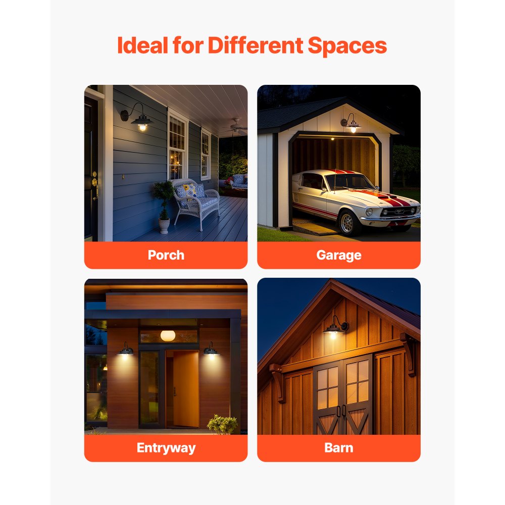 Iluminación fiable para cualquier clima: Esta luz exterior para granero funciona de forma fiable entre -25 °C y 50 °C. Se adapta fácilmente a las variaciones estacionales y proporciona una iluminación exterior estable y sin necesidad de mantenimiento, incluso en inviernos rigurosos o veranos calurosos