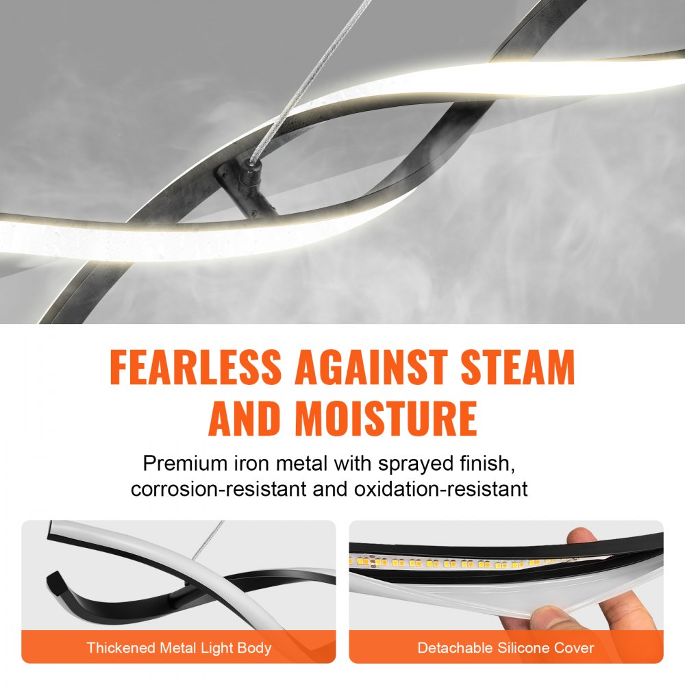 Alta durabilidad, construida para durar: construida con metal duradero, nuestra lámpara colgante lineal garantiza una estructura estable y robusta. El marco de hierro negro combinado con tiras de luz retorcidas crea un flujo natural en cualquier habitación. El acabado resistente a la corrosión y a la decoloración garantiza una belleza duradera y añade un toque de elegancia rústica a la decoración de su interior.