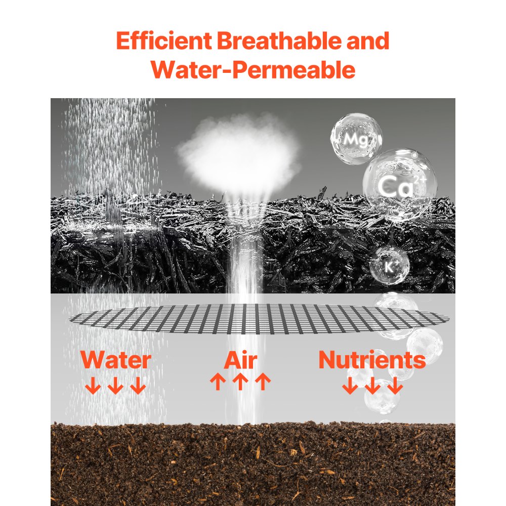 Transpirable y permeable al agua: Los espacios entre las fibras permiten una excelente circulación del aire, lo que permite que el agua y los nutrientes lleguen a las raíces de las plantas, lo que garantiza que estén bien nutridas. El diseño transpirable también ayuda a prevenir la compactación del suelo