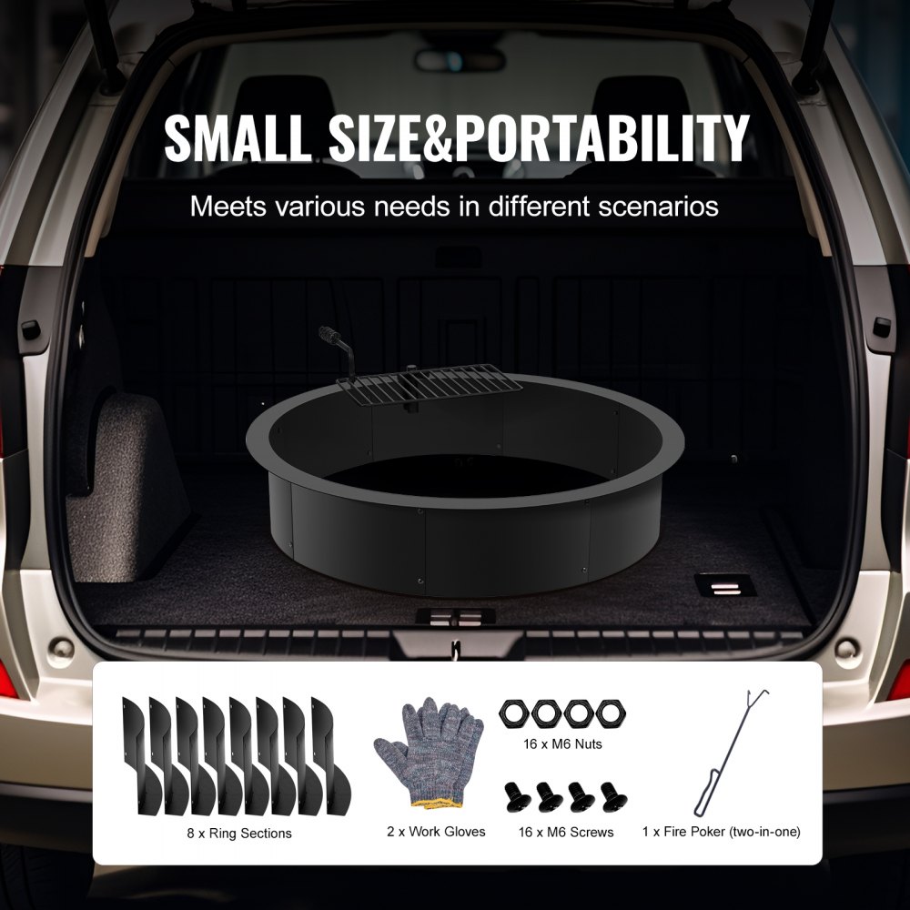 Tamaño generoso: Diámetro exterior de 1016 mm, diámetro interior de 914,4 mm, altura de 215,9 mm y espesor de 1,5 mm. Proporciona un amplio espacio al aire libre para acomodar más leña y carbón, lo que facilita una mejor circulación del aire para garantizar una combustión completa y una fogata crepitante.