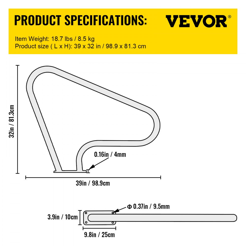 Fácil de ensamblar: El pasamanos de piscina tiene una placa base que se puede instalar en pisos de concreto, pisos de madera o pisos de ladrillo. Se mantiene firme. Es fácil de montar por una sola persona en unos pocos minutos. En primer lugar, debe medir la distancia desde el azulejo en el interior de la piscina según sea necesario, luego marcar y perforar los 4 orificios pretaladrados de φ 0,4" / 9,5 mm; use los tornillos y anclajes incluidos para apretar.