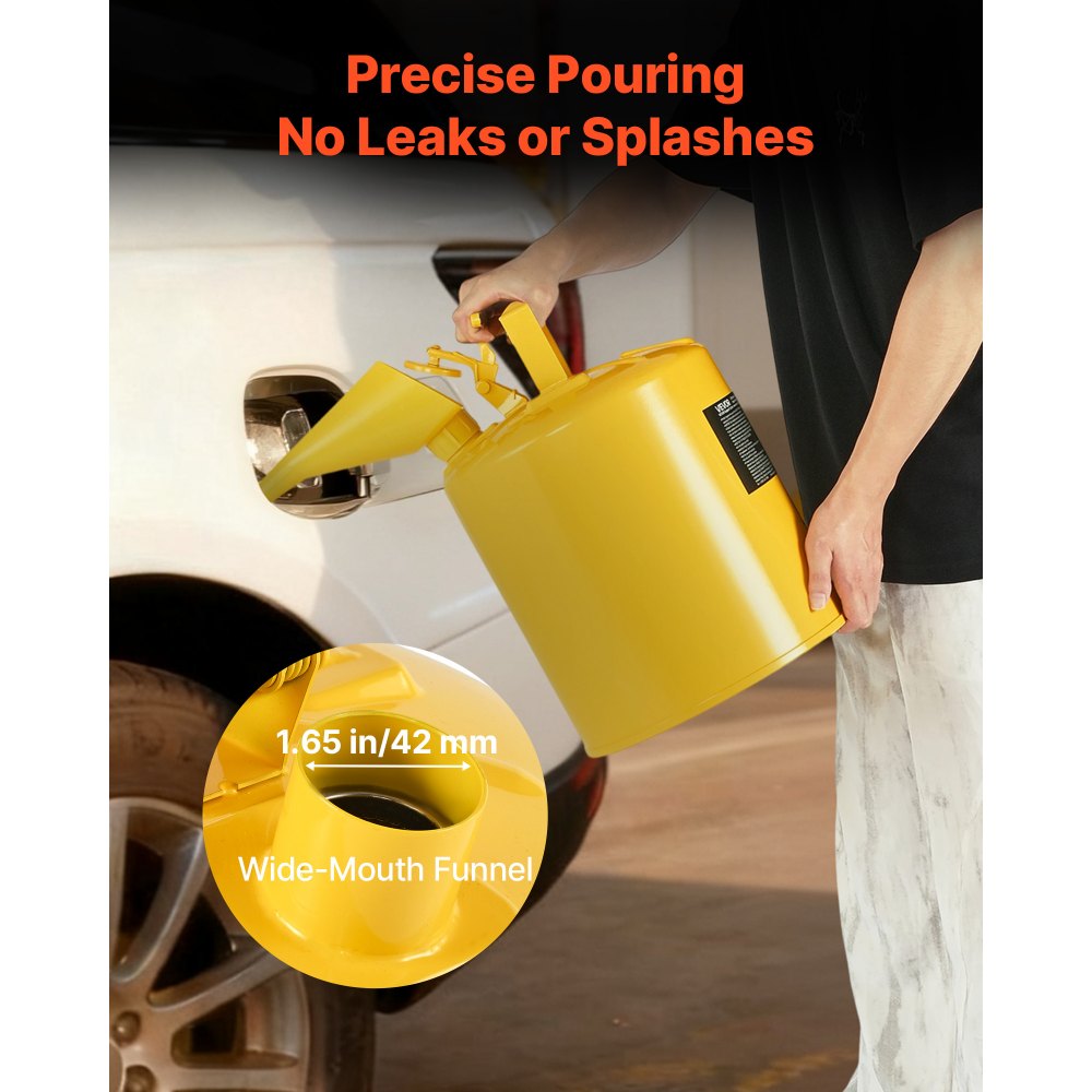 Llenado preciso: Nuestro bidón metálico cuenta con un embudo de boca ancha a prueba de salpicaduras. La salida de aceite tiene un diámetro interior de 42 mm para garantizar un llenado y vertido suaves. Evita salpicaduras y derrames, facilitando el repostaje o el vertido de otros líquidos