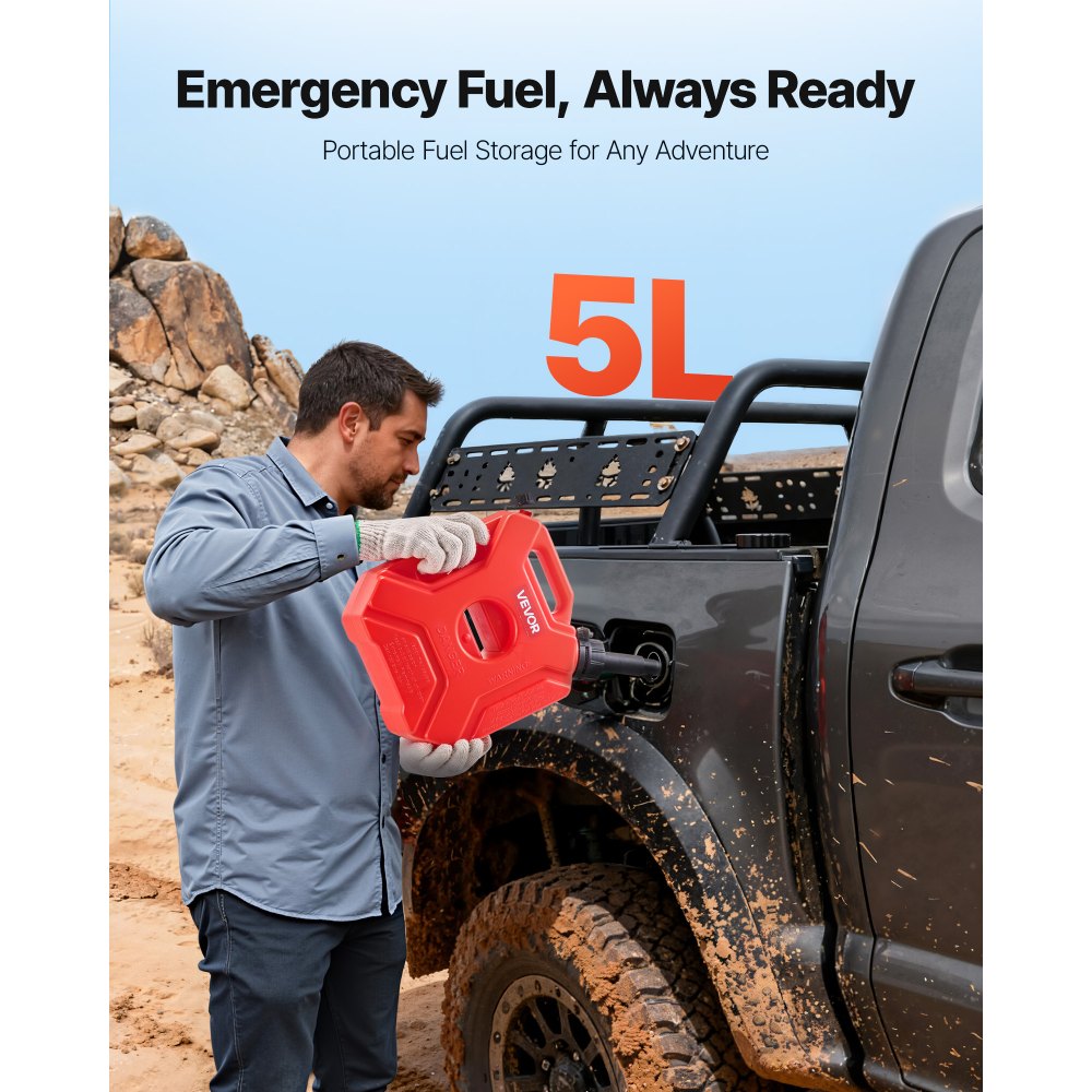 Tamaño compacto: Combustible de reserva sin ocupar espacio en el maletero. Este bidón de gasolina de 5 L cabe perfectamente. Es ligero, portátil y perfecto para viajes, camping o trabajo al aire libre