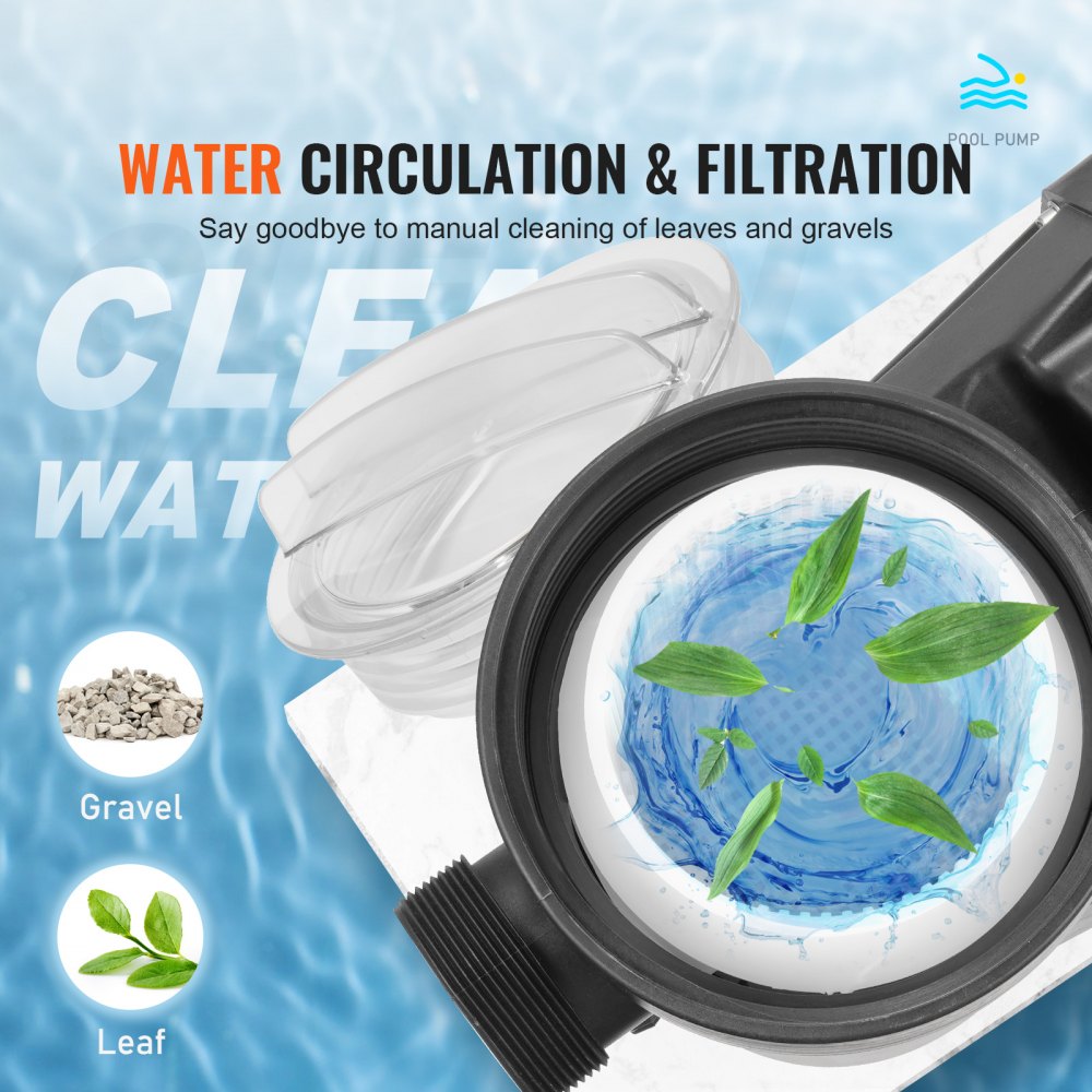 Sistema de circulación de agua eficiente: Temperatura máxima del agua: 50 ℃. Nuestra bomba de piscina tiene dos velocidades alternativas: alta velocidad a 33 m³/h que eleva hasta 16 m y baja velocidad a 14 m³/h que eleva hasta 4 m. El impulsor de plástico de ingeniería puede tener 1450/2860 RPM mientras mantiene un bajo nivel de ruido para filtrar las impurezas rápidamente. Además, la tapa transparente le brinda una vista clara para limpiar a tiempo la canasta de filtro extragrande desmontable.