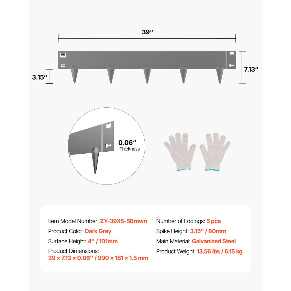 Lo que recibirás: Cada juego incluye 5 bordes de metal para macizos de flores, 1 par de guantes de instalación y 1 manual de instrucciones. El diseño con púas extendidas garantiza una fácil instalación al ayudar a que la barrera penetre en el suelo con menos esfuerzo. Pasa más tiempo disfrutando de tu jardín y menos tiempo cuidándolo