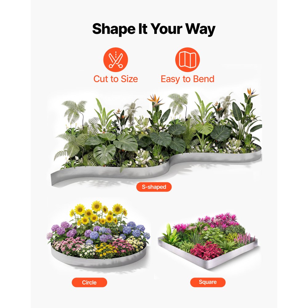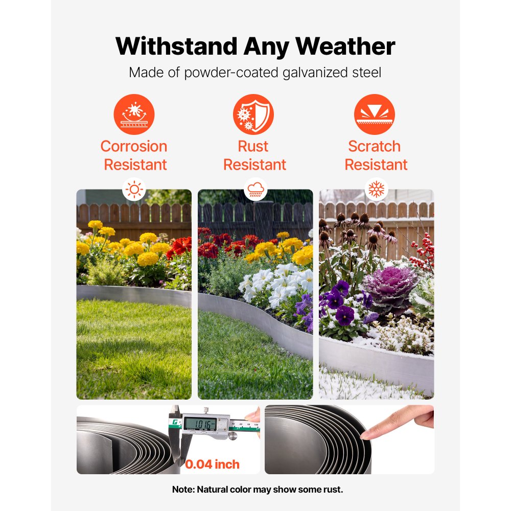 Longitud continua de 10 m: Este borde metálico para jardín ofrece un rollo completo de 10 m para delimitar grandes áreas de jardín de una sola vez. Menos cortes significan líneas más limpias y menos tiempo para ajustar las piezas