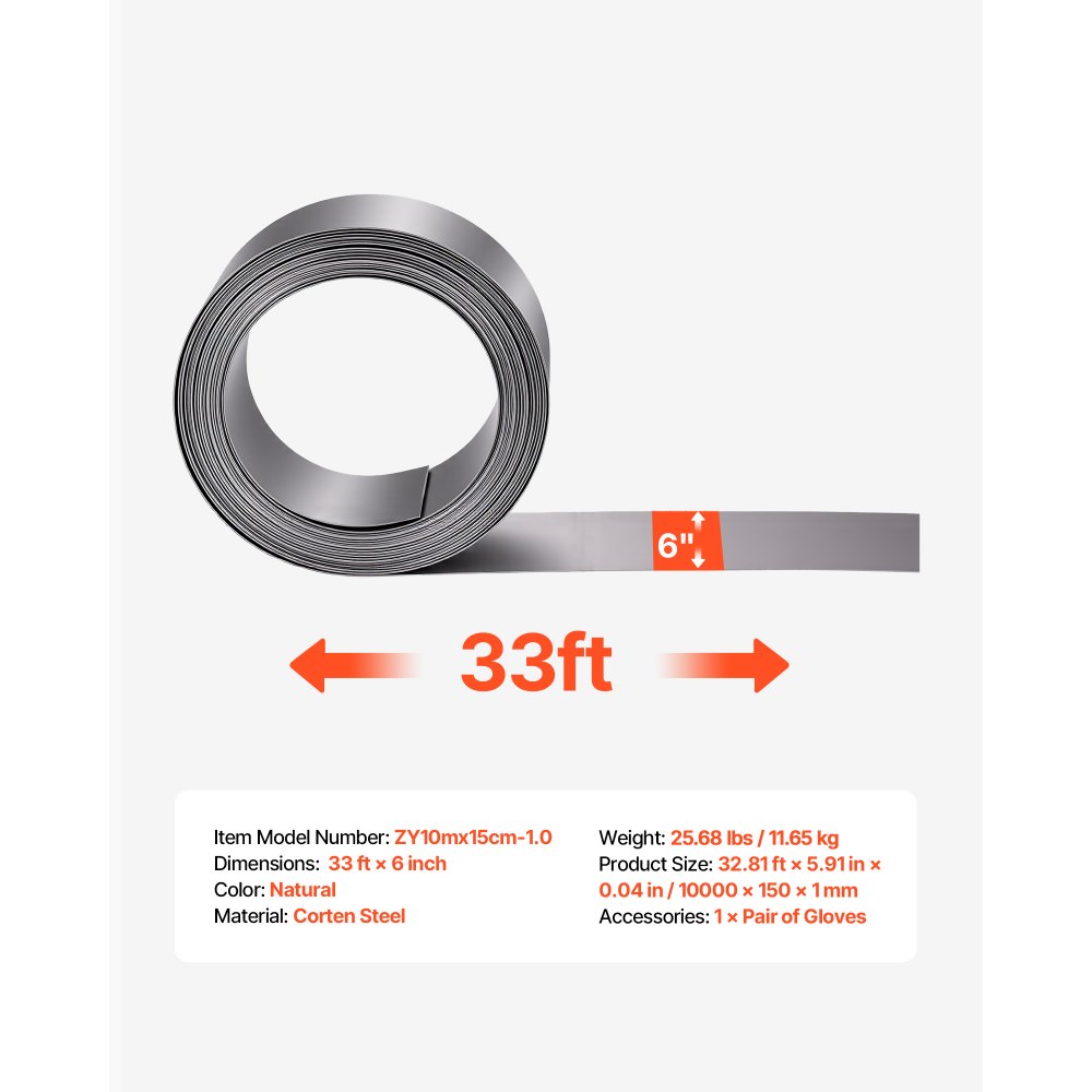 Borde de Césped de Acero Corten 10 m x 15 cm, Delimitador Exterior en Rollo, Separador Metálico Resistente, Bordura de Jardín Flexible con 1 Par de Guantes para Parterres Senderos Paisajismo - Jardín y césped