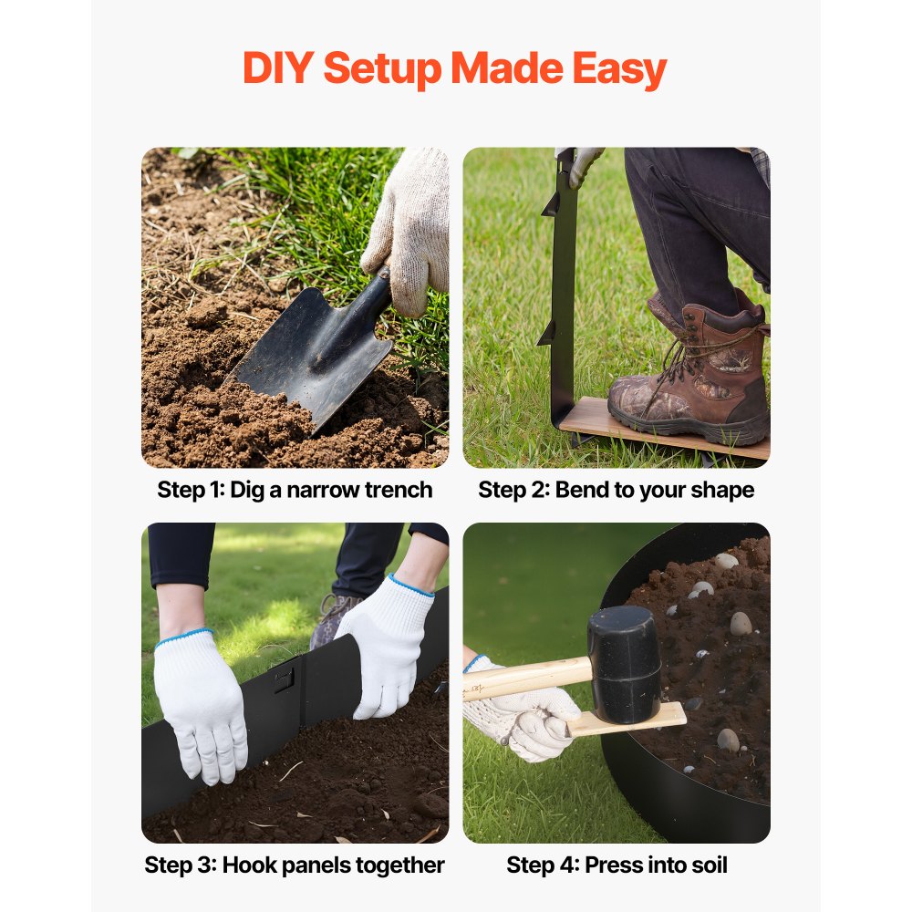 Juego completo, listo para usar: Este juego de borde metálico para jardín incluye 6 secciones de borde y un par de guantes. Las púas extendidas se deslizan suavemente en la tierra, lo que facilita y agiliza la instalación
