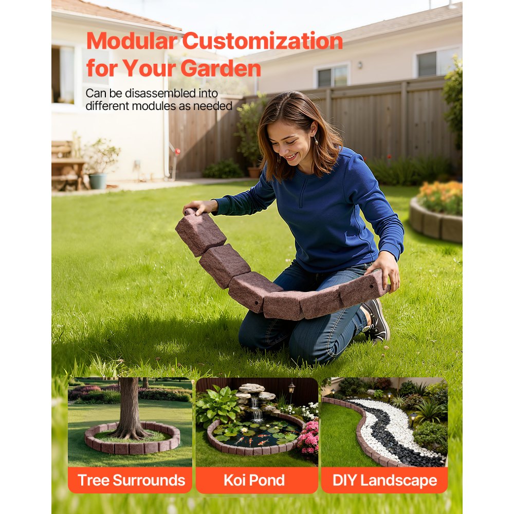 Diseño de paisaje versátil: Ideales para cualquier diseño de exteriores, estos bordes de adoquines ofrecen una aplicación flexible. Son ideales para crear elegantes límites de jardín, separar césped y senderos o mejorar la seguridad alrededor de piscinas. El diseño modular permite líneas rectas uniformes o curvas creativas, lo que le permite hacer realidad su visión del paisaje